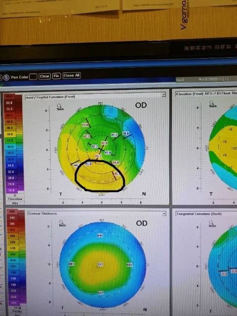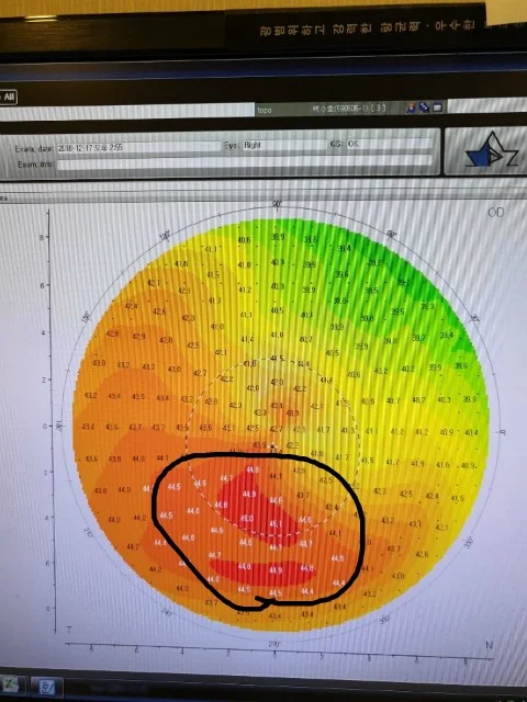 즉, 각막 지형이 일정하지 않은 상태죠.