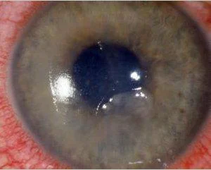 위 사진들이 전형적인 각막 짓무름증에서 보일 수 있는 모습입니다. 쉽게 비유하자면 이렇습니다.