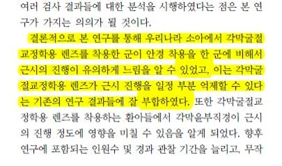연구 결과는 개인의 눈 상태, 생활 환경, 연령 등에 따라 다르게 나타날 수 있으며,모든 경우에 동일하게 적용되는 것은 아닙니다.